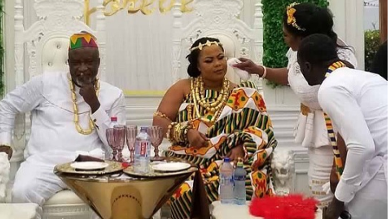 The gospel songstress got married to the New Patriotic Party’s Hopeson Adorye at a private location in Tema, Accra.